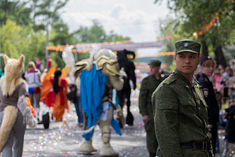 В минувшие выходные в Иркутске прошел юбилей города. Горожане участвовали в различных конкурсах, слушали живую музыку, помогали своему округу победить в «битве районов» – каждый мог найти развлечения на свой вкус. Праздник открылся традиционным шествием костюмированных колонн.
